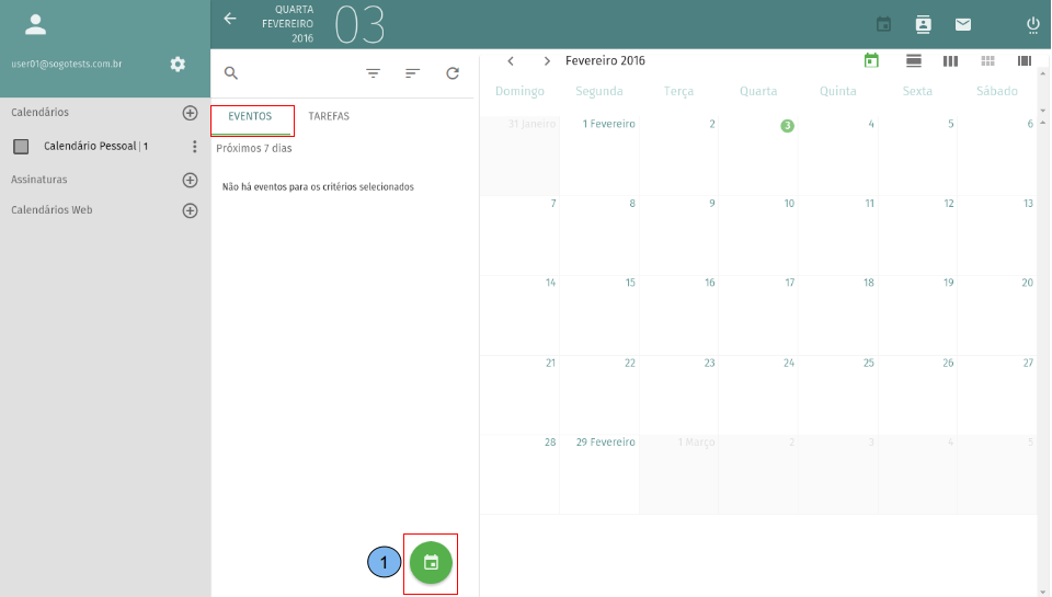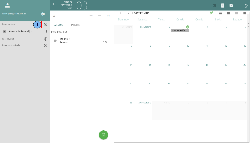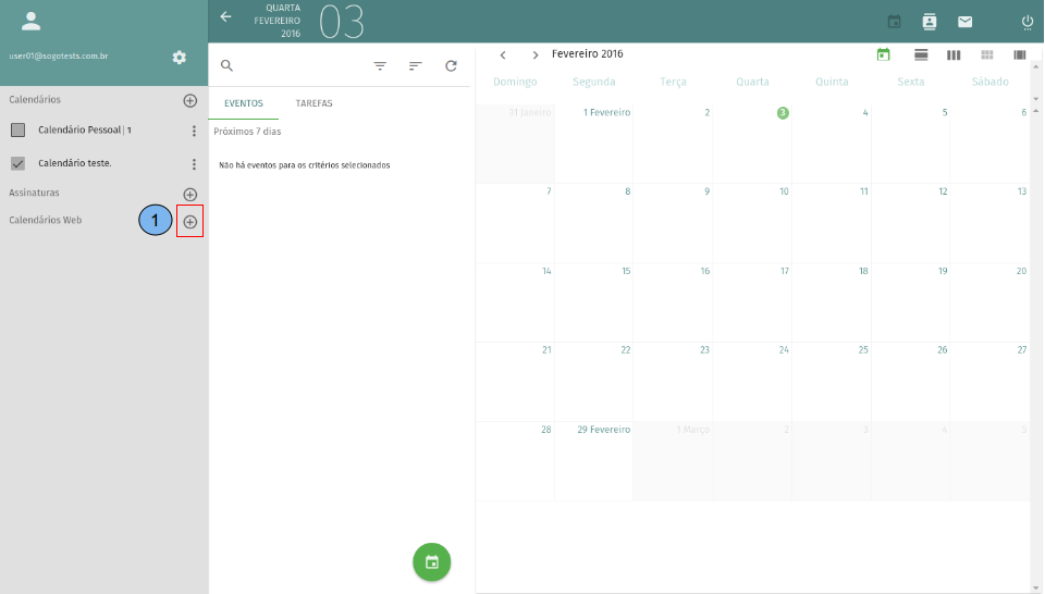 (1)Para criar um novo calendário clique no botão adicionar(+) como mostra a figura abaixo.