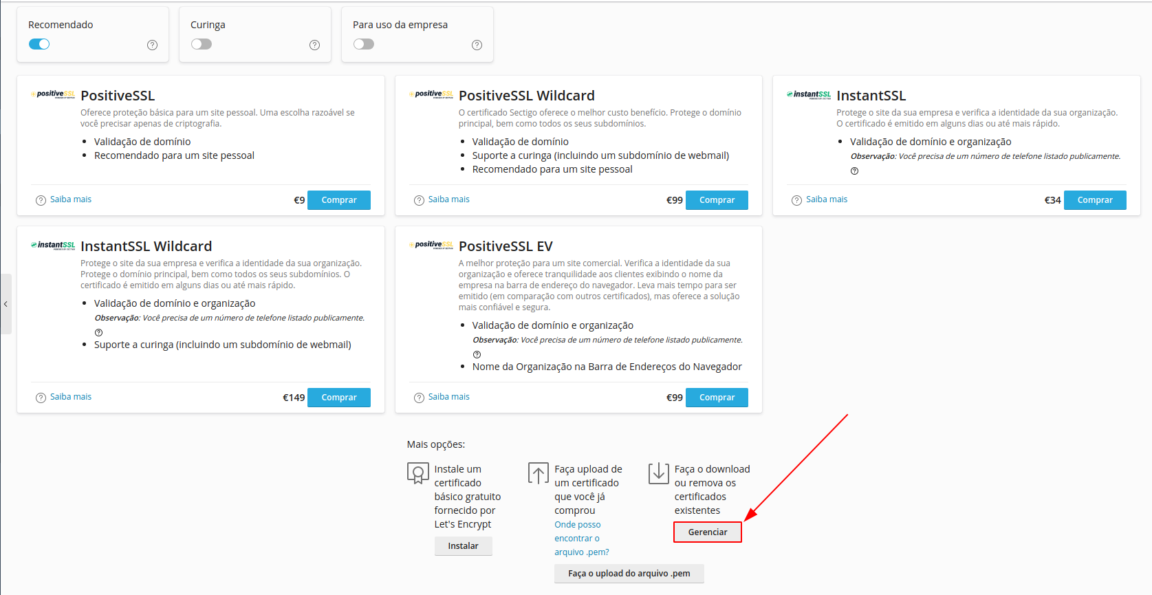 - Depois que você já recebeu o certificado da sua certificadora, acesse novamente o área do Certificado SSL