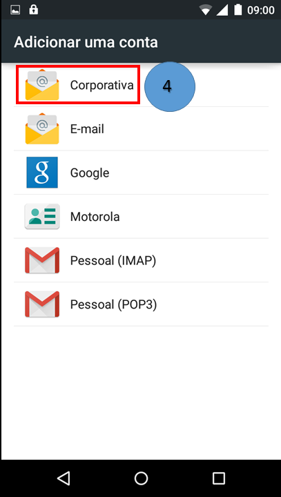 Selecione a opção “Exchange” ou “Corporativa”.(4)