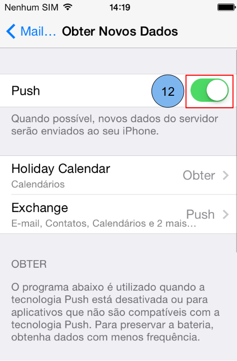 Na próxima tela verifique se a opção “Push” está ativa, caso contrário ative essa opção (12)