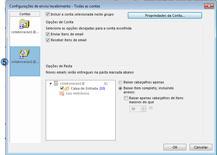 Selecione então a conta POP configurada (5)
