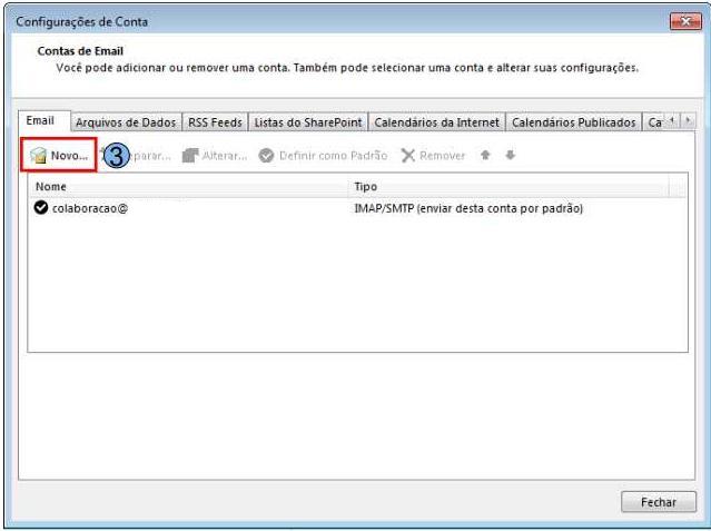 Vamos utilizar a opção “Novo” para adicionar a nova conta de e-mail (3)