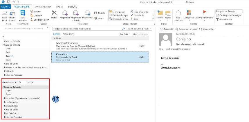 A nova conta será exibida na tela do Outlook (16) sendo possível utilizá-la para realizar as tarefas.