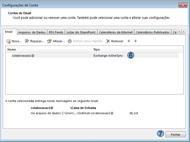 Então é possível observar que apenas uma única conta estará presente (6), clique então em “Fechar” (7)