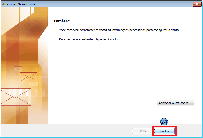Clique em Concluir (24) para começar a utilizar sua conta de email.