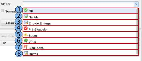 Status “Vírus” (6) - Ocorre quando o Servidor de Hospedagem por algum motivo não consegue verificar o anexo da mensagem, logo a mesma é barrada pois a mensagem contem vírus.