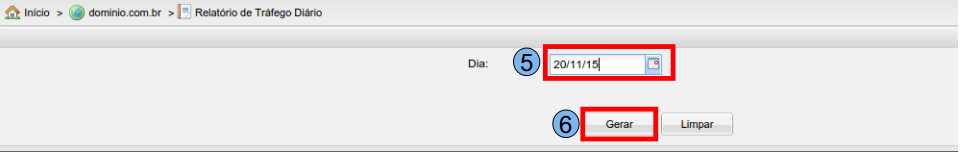 Na opção “Dia” (4), selecione um dia específico para filtrar e visualizar o tráfego diário.