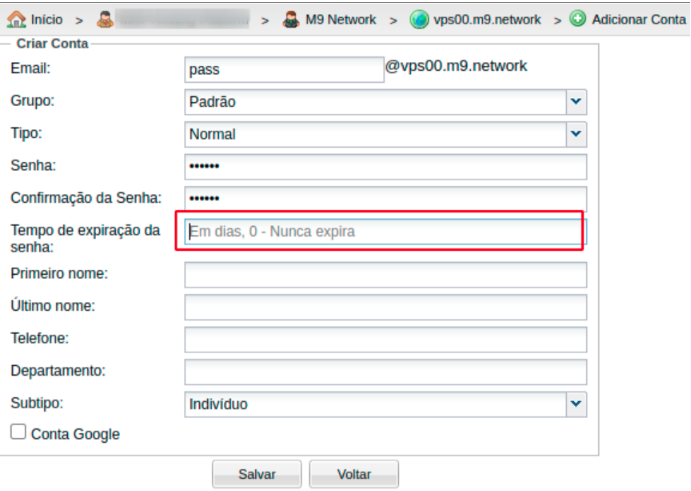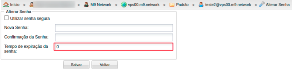 Obs: A funcionalidade de expiração de senha não envia e-mails de notificação quando a senha está perto de expirar.